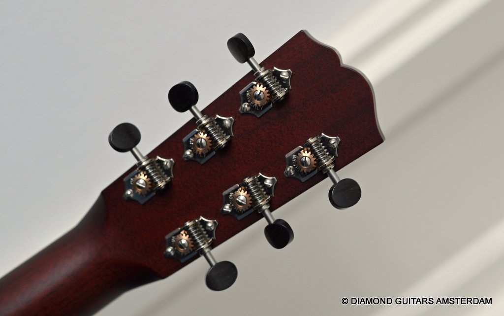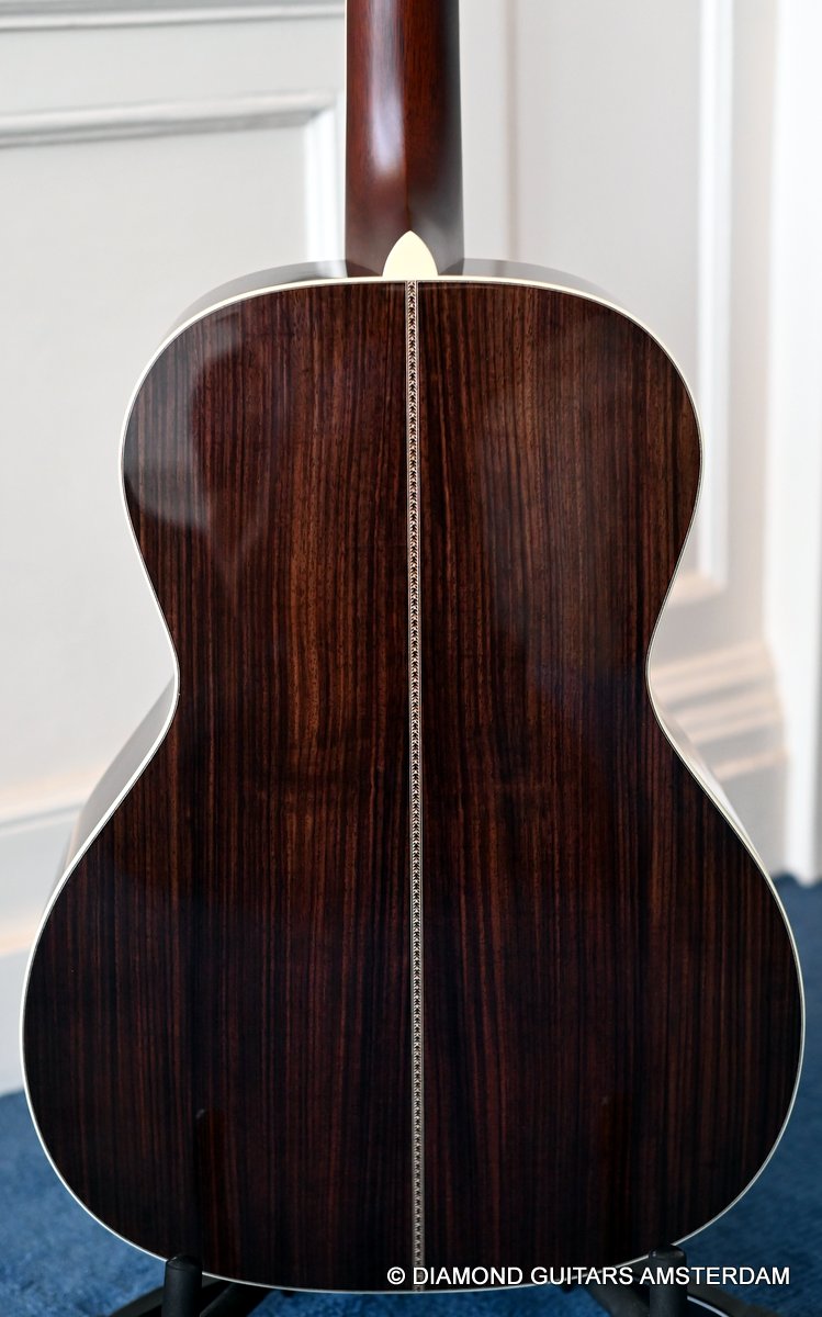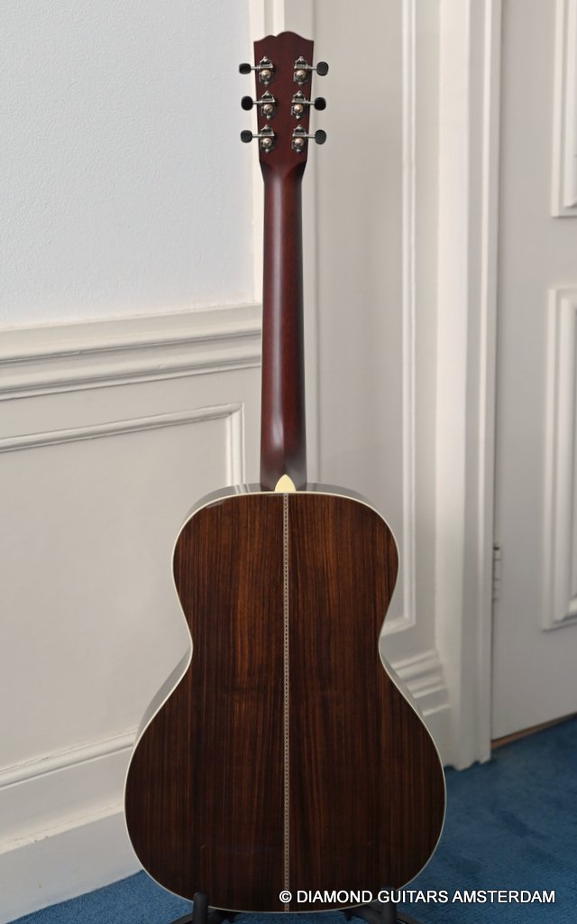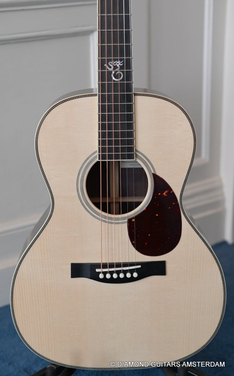 Most players are astonished when they play the Santa Cruz H for the first time. Its volume is startling for a small-bodied guitar. The body’s depth allows for a much larger presence than would be expected in an instrument of its size. The guitar’s balanced hand voicing gives the H a precise response at every fretboard position. This model is highly recommended for those who prefer the sweetness and ease of playing a small guitar but require more comfort and volume.