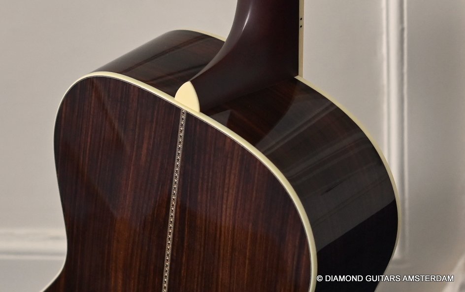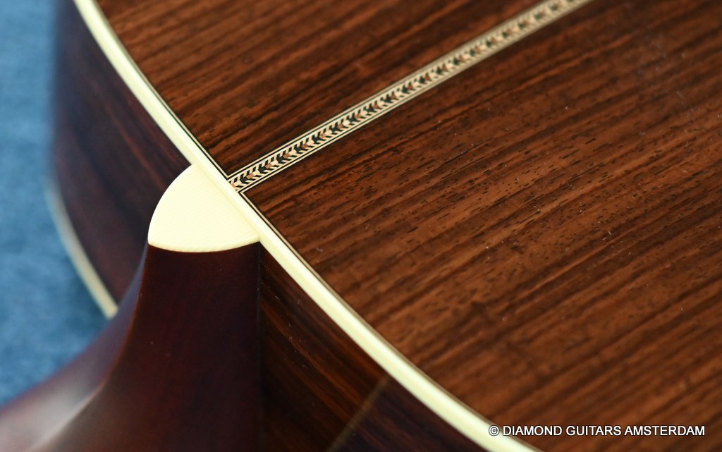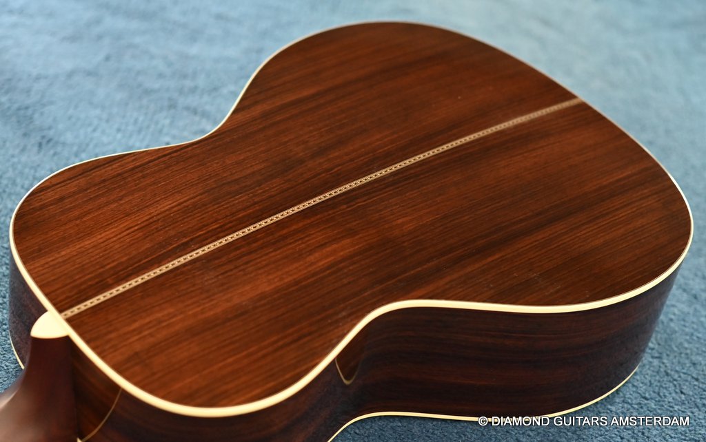 Beautiful Santa Cruz H with a unique flavor that somehow oozes a “vintage” vibe. She features a complex tone with a warm and powerful bell like high notes with that unmistakable Rosewood low end. Richard Hoover and this team know how to build high-end acoustics.