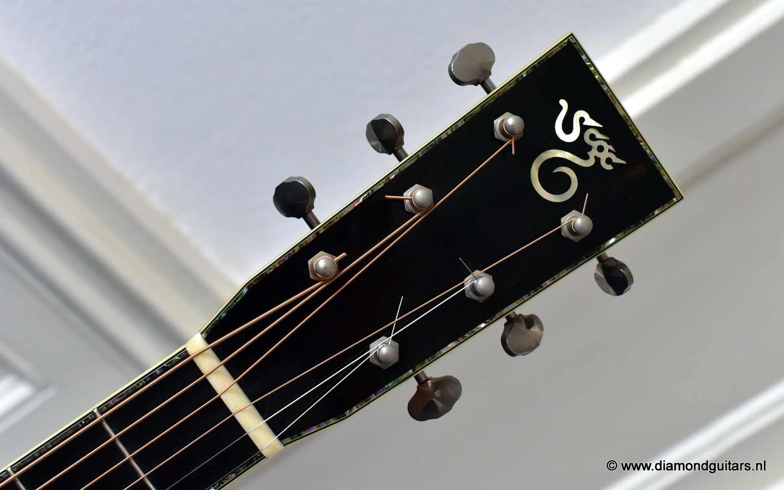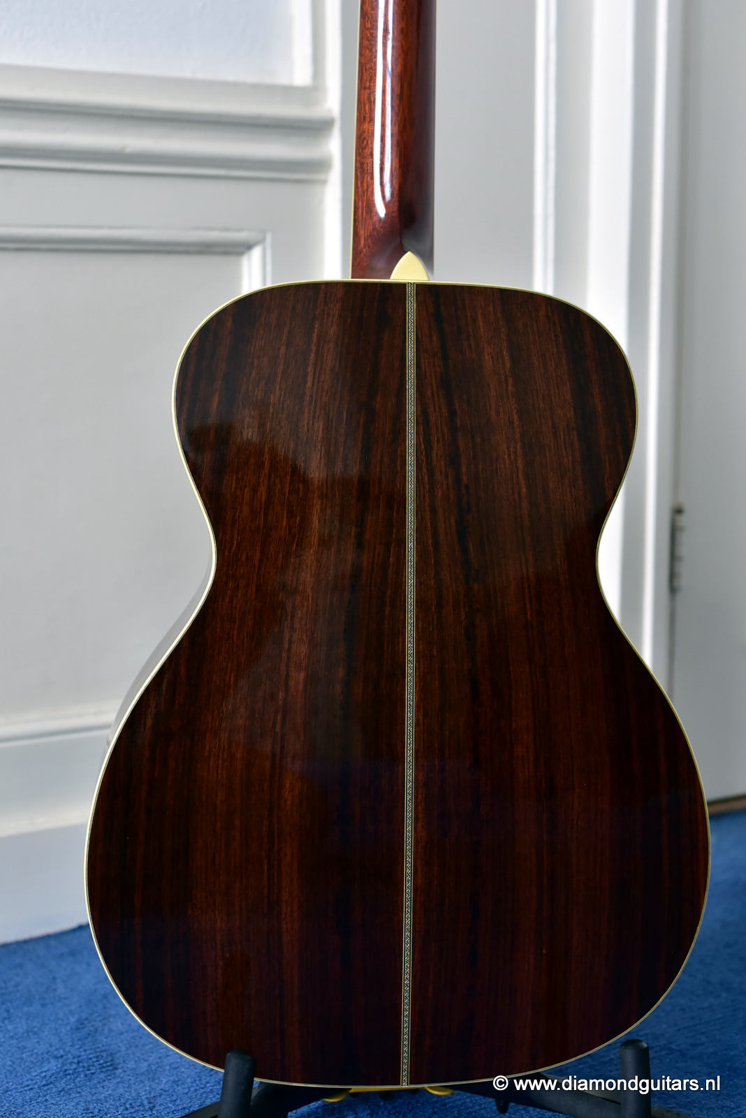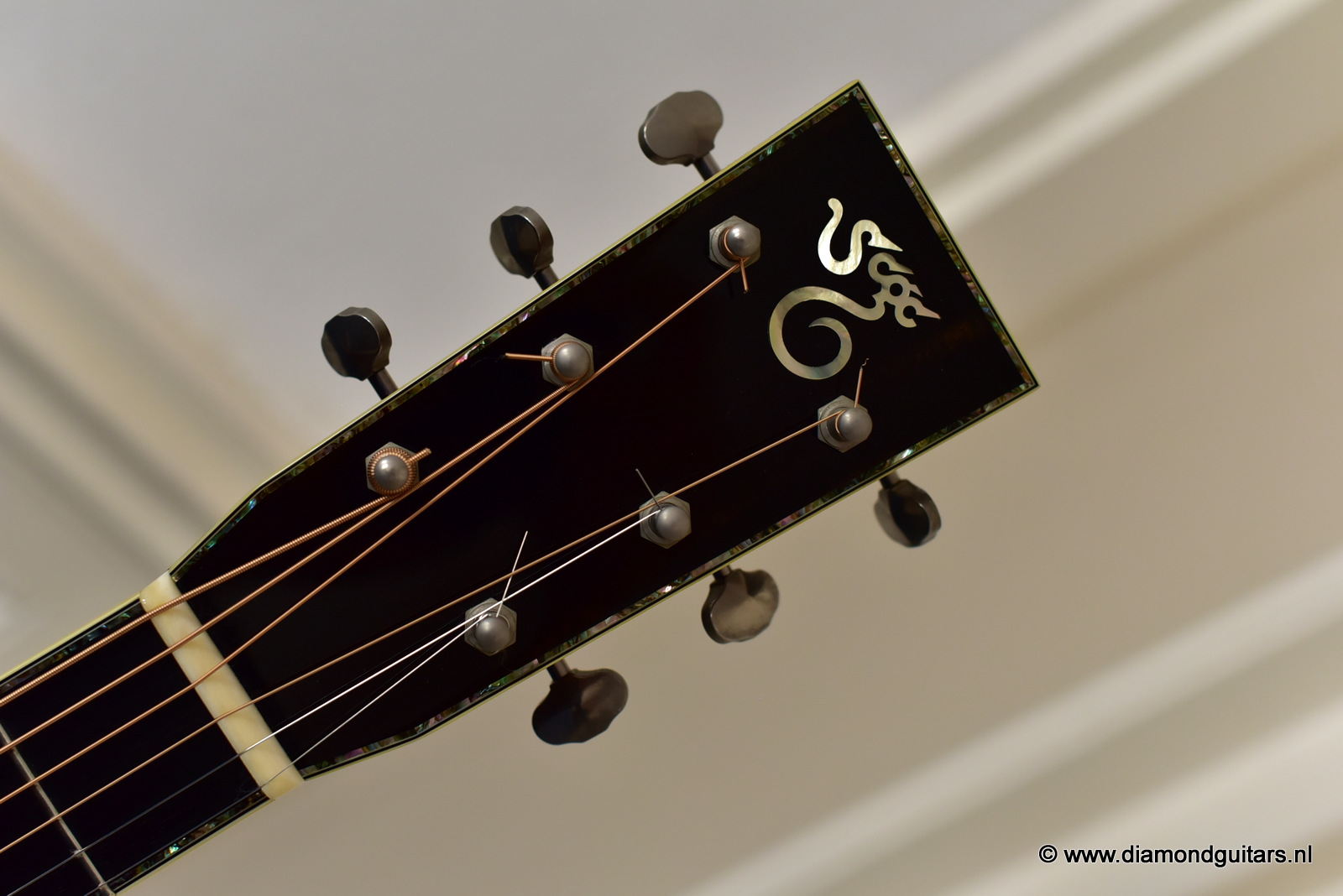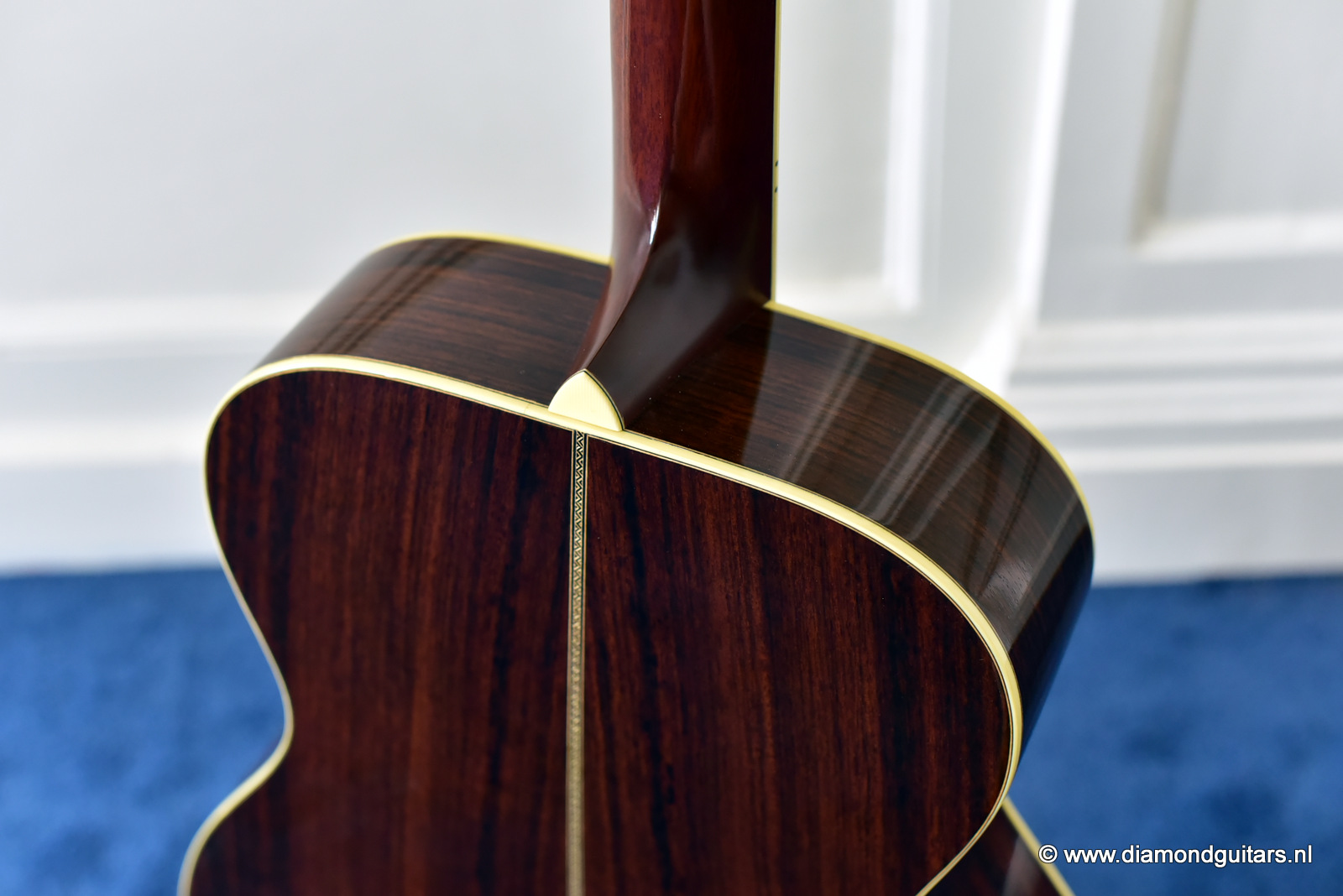 1997 was a special year for Richard. The company was really doing well and new models and techniques were incorparated into his instruments. One of these techniques was the inlay work. The famous inlay artist Larry Robinson designed and crafted the commemorative Art Deco pre war style inlay work on this guitar. A true piece or art! That is not all: this instrument sounds amazing. Full bodied tones in the low end and sprakling highs.