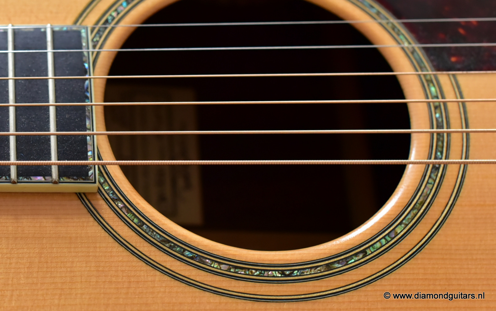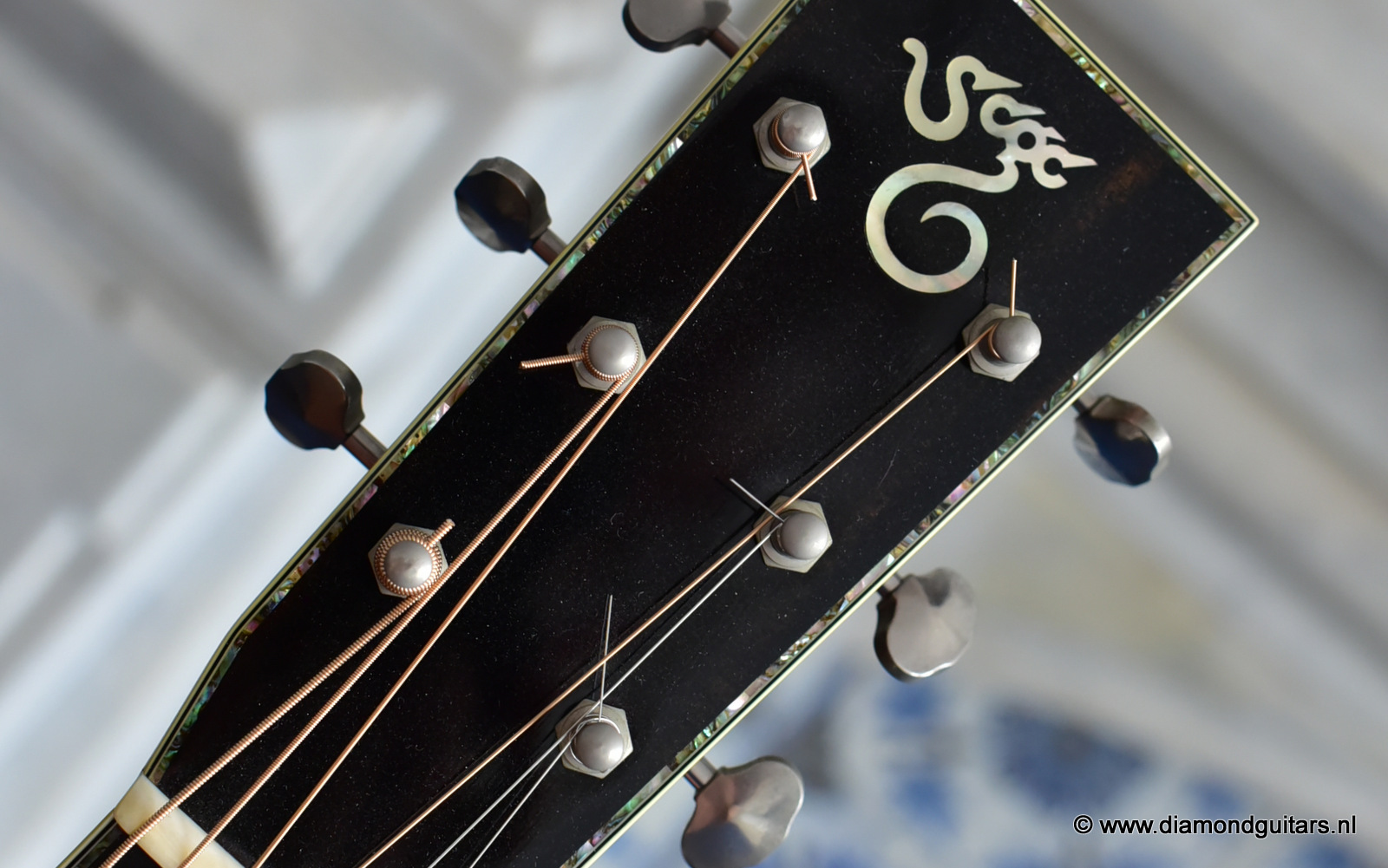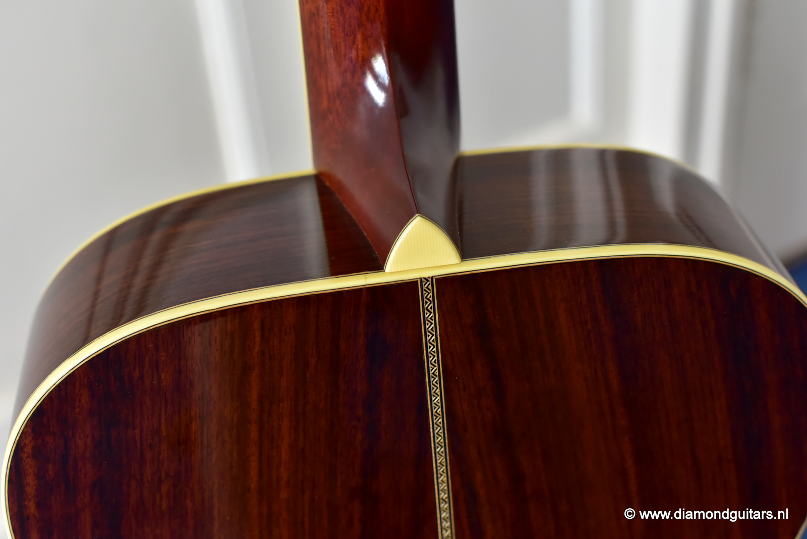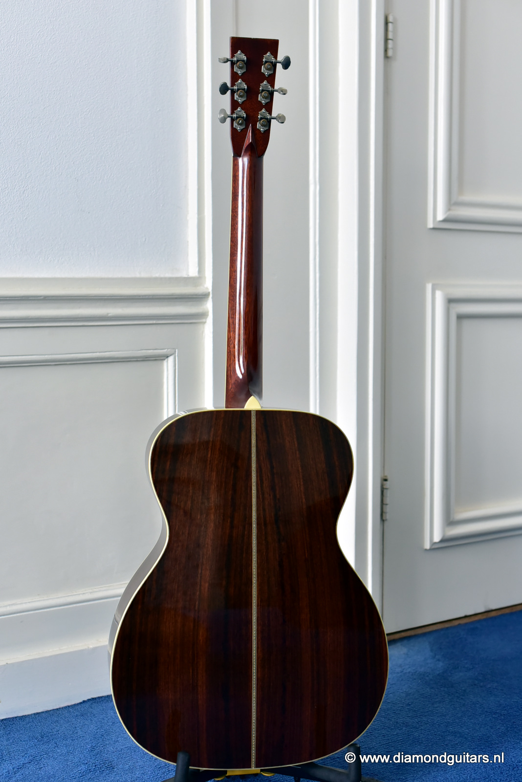 1997 was a special year for Richard. The company was really doing well and new models and techniques were incorparated into his instruments. One of these techniques was the inlay work. The famous inlay artist Larry Robinson designed and crafted the commemorative Art Deco pre war style inlay work on this guitar. A true piece or art! That is not all: this instrument sounds amazing. Full bodied tones in the low end and sprakling highs.