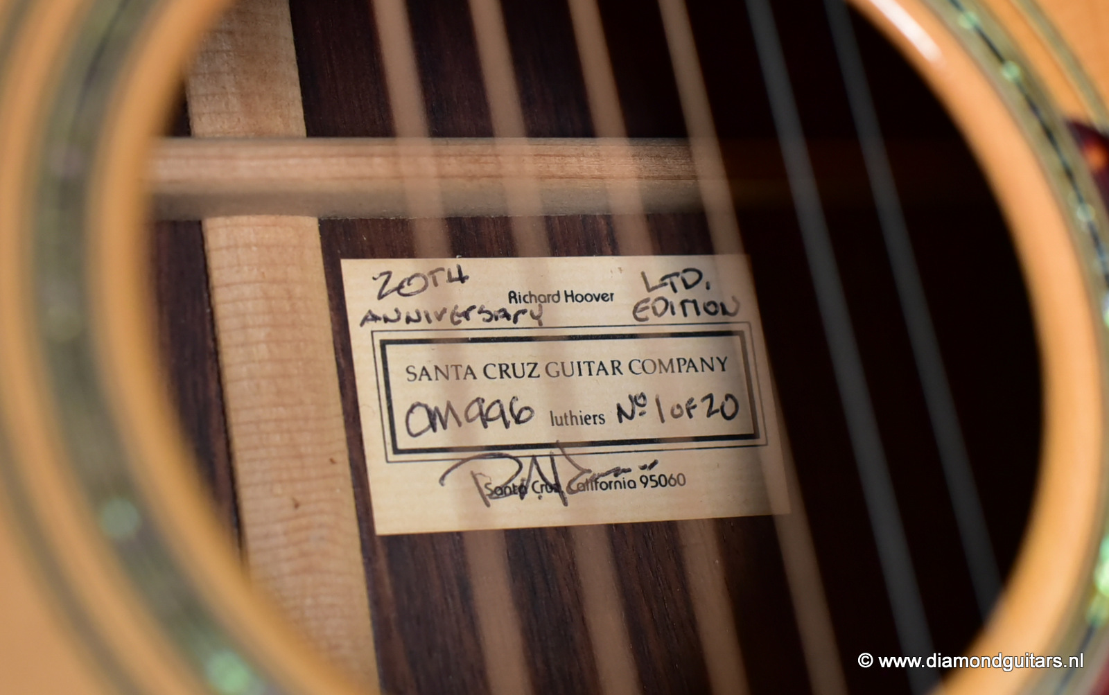 This is the first guitar that Richard Hoover built for his 20th anniversary of the Santa Cruz Guitar Company. Nineteen guitars would follow but this is the true number 1.