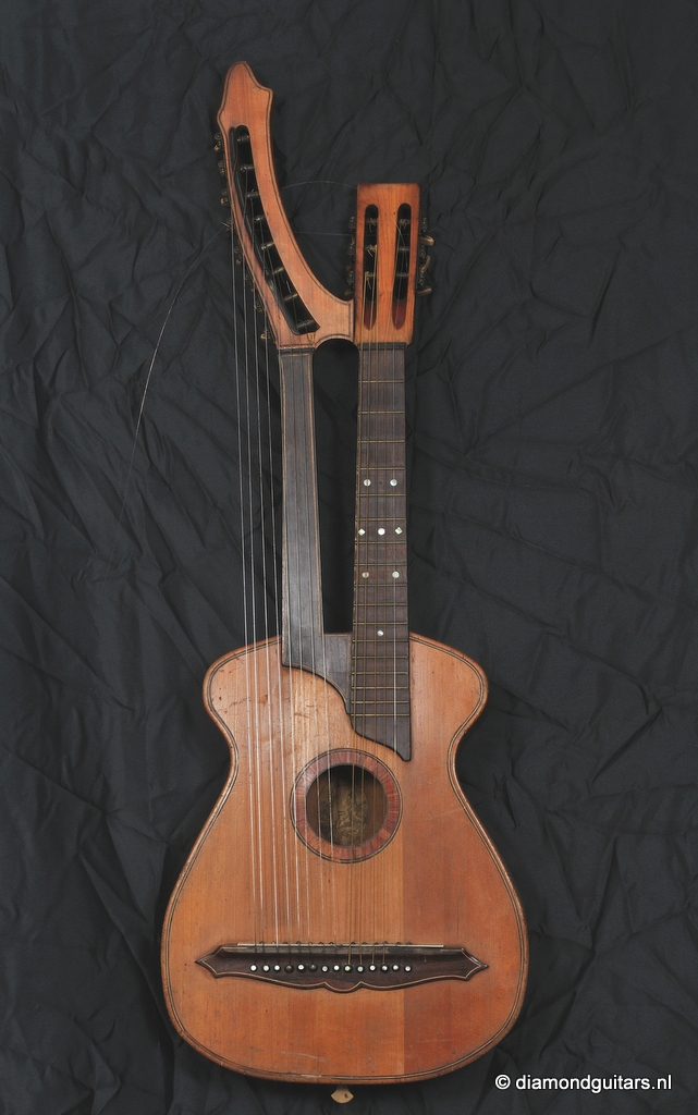 Originated in Vienna during the late 19th century, linked to Schrammelmusik — a popular form of Viennese folk chamber music.  The ensemble instrumentation’s were 2 violins, a clarinet (or accordion) and the contraguitar (Schrammel guitar). They evolved from the earlier Viennese guitar tradition (Stauffer, Scherzer, etc.) but with added bass capability. Schrammelgitarre (Contraguitar) featured 12–18 strings. 6 normal guitar strings + 6–12 additional unstopped bass strings (bourdon strings) and an extended headstock with tuners for extra basses.